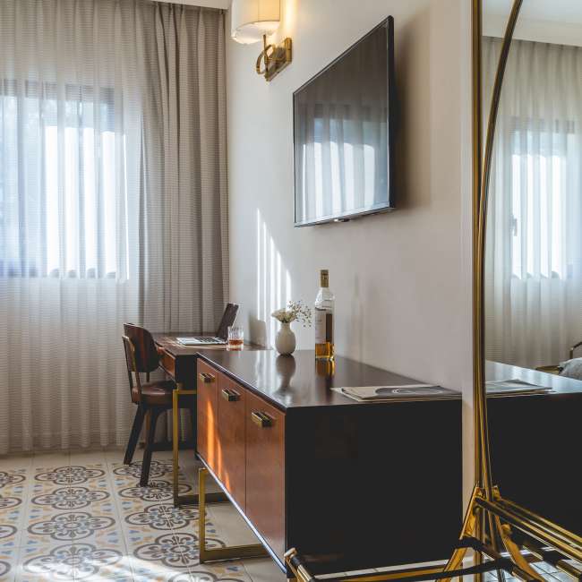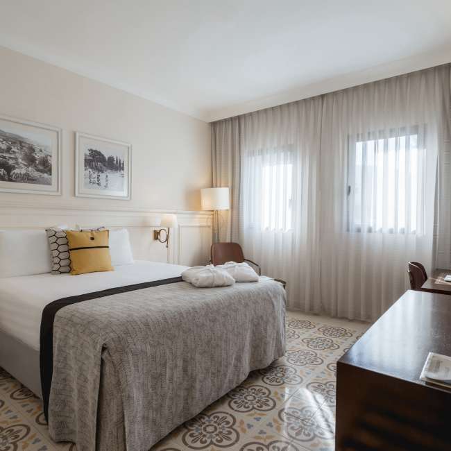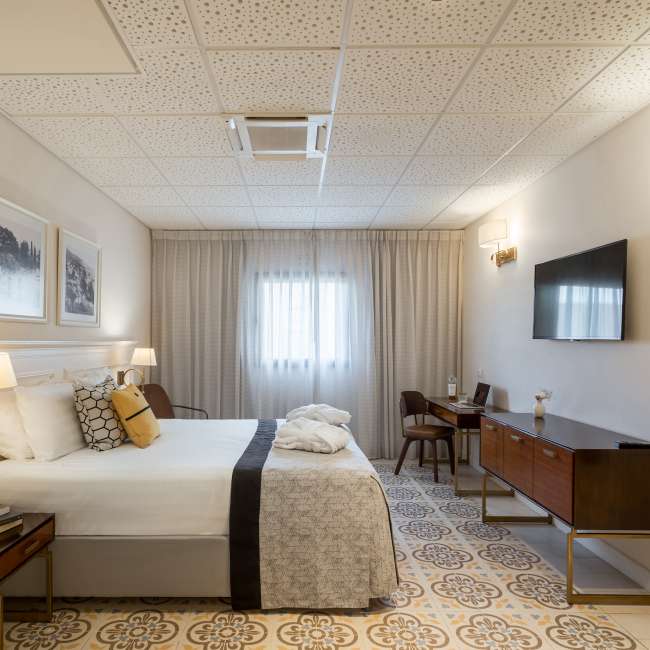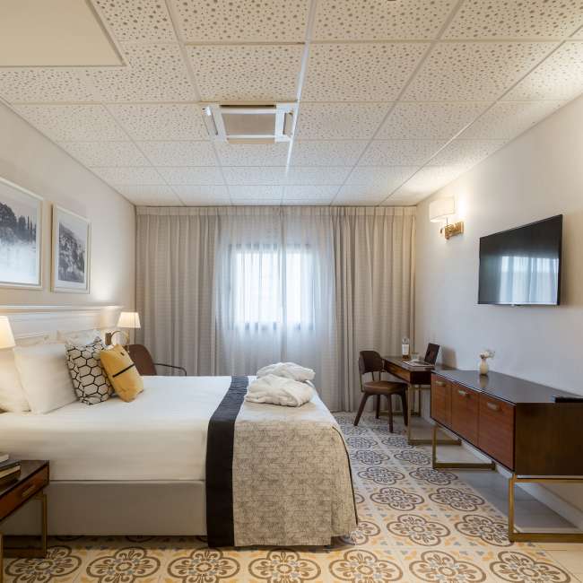 חדרי המלון מעוצבים בסגנון קלאסי ומצוידים בכל מה שצריך לחופשה מפנקת. בין אם תבחרו בחדר דלקס הצופה לבריכה עם מרפסת פרטית או בחדר קלסיק נעים ואינטימי, תיהנו מאווירה חמימה ומזמינה שמשתלבת עם נוחות מודרנית. כל חדר מעוצב בקפידה כדי להבטיח שהשהייה שלכם תהיה לא פחות ממושלמת.
