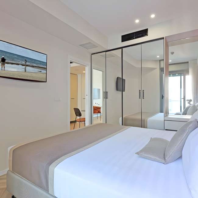 החדרים כוללים מרפסת מפנקת (בחלקן נוף צידי אל הים), חדר שינה, טלויזית LCD, סלון, מטבחון מאובזר, מיקרוגל, מכונת אספרסו וערכת קפה ותה.
